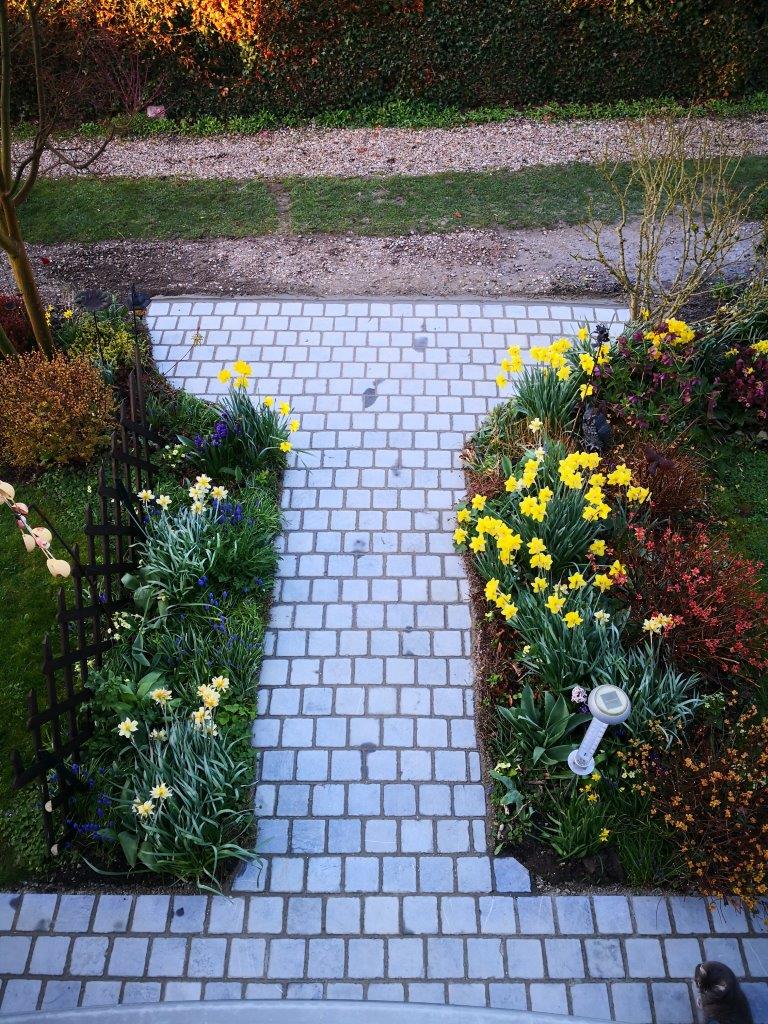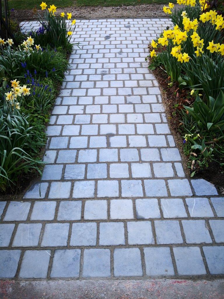 Aujourd’hui, nous accédons à la maison par une allée pavée du plus bel effet.