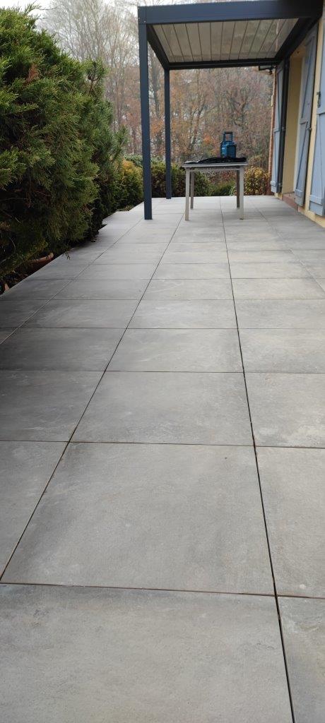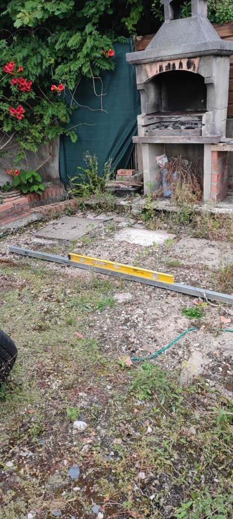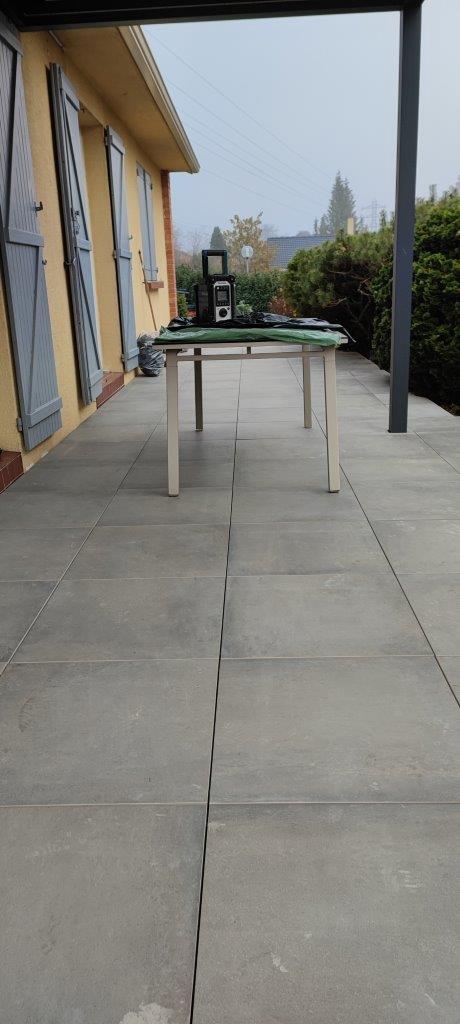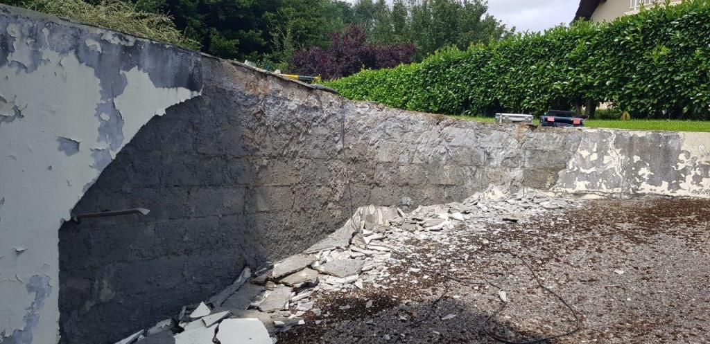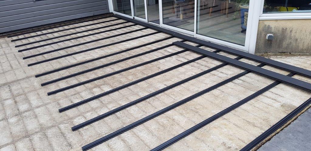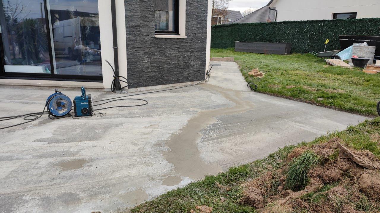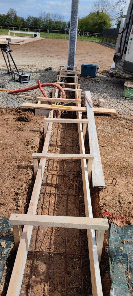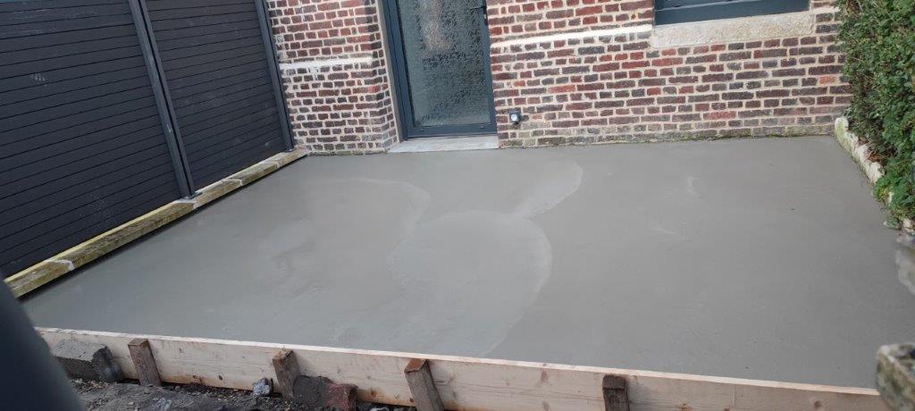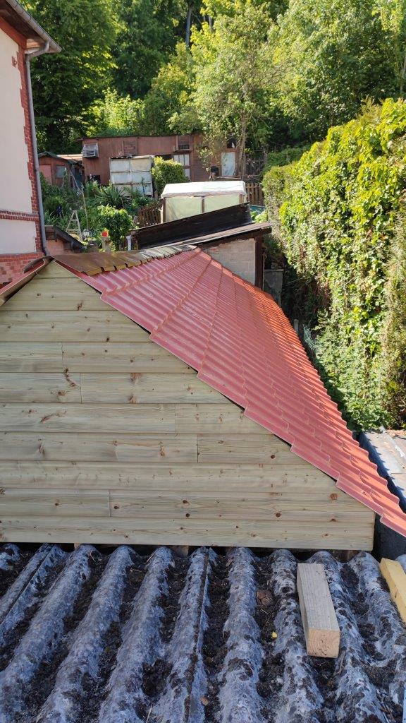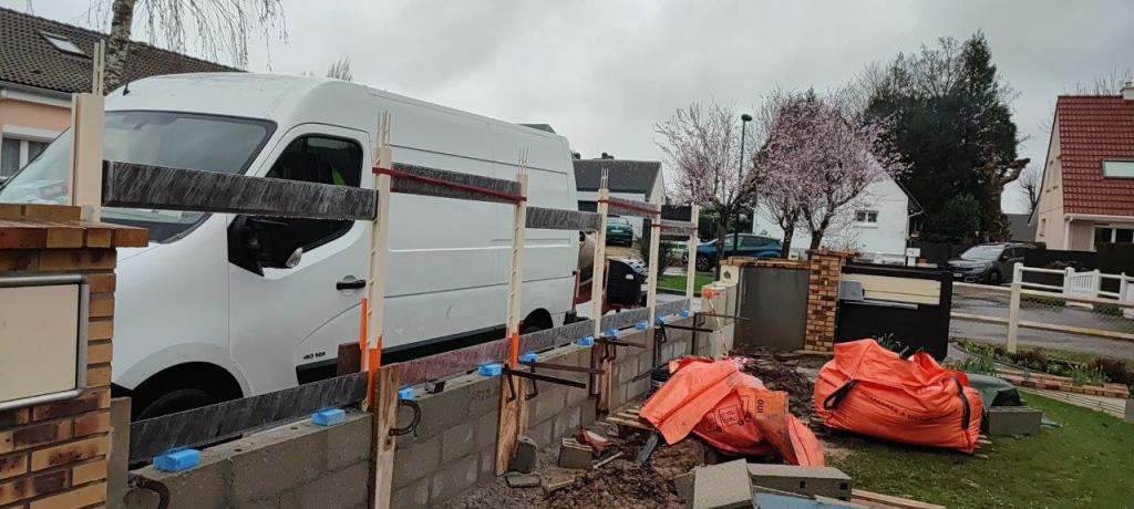 Réalisation d’un carport de 6m x5m. Poteaux armés et bétonnés. Madrillets 75×225, toiture bac acier et dallage de 10cm.