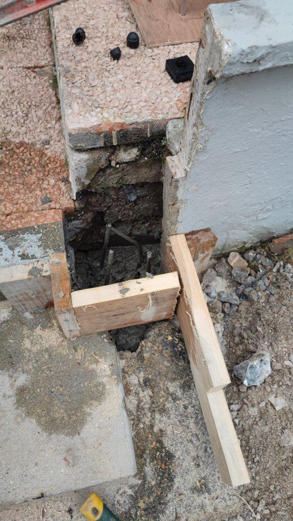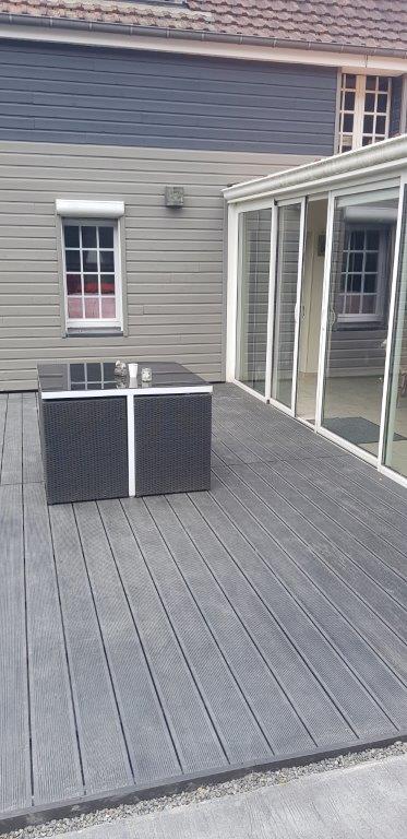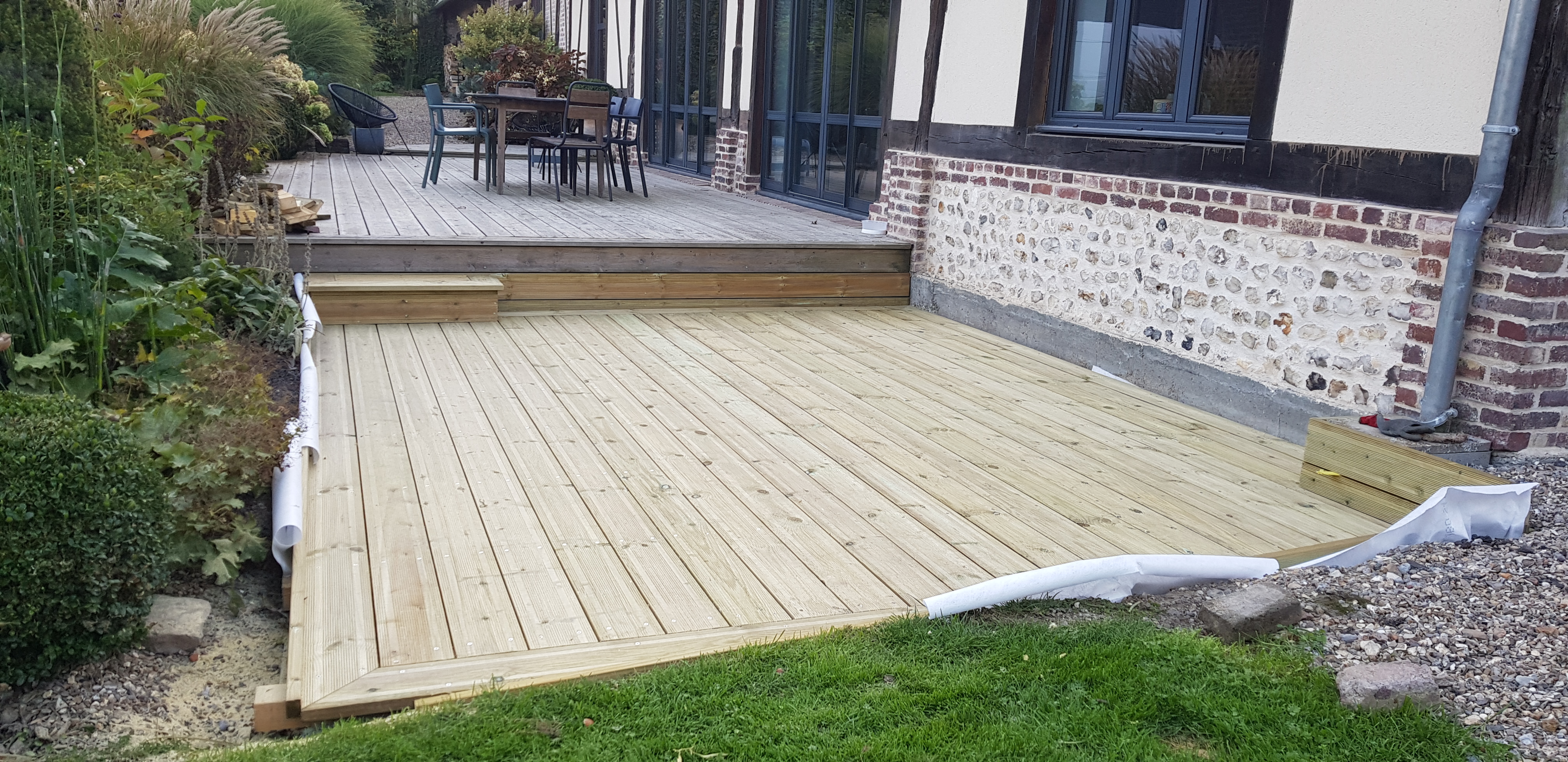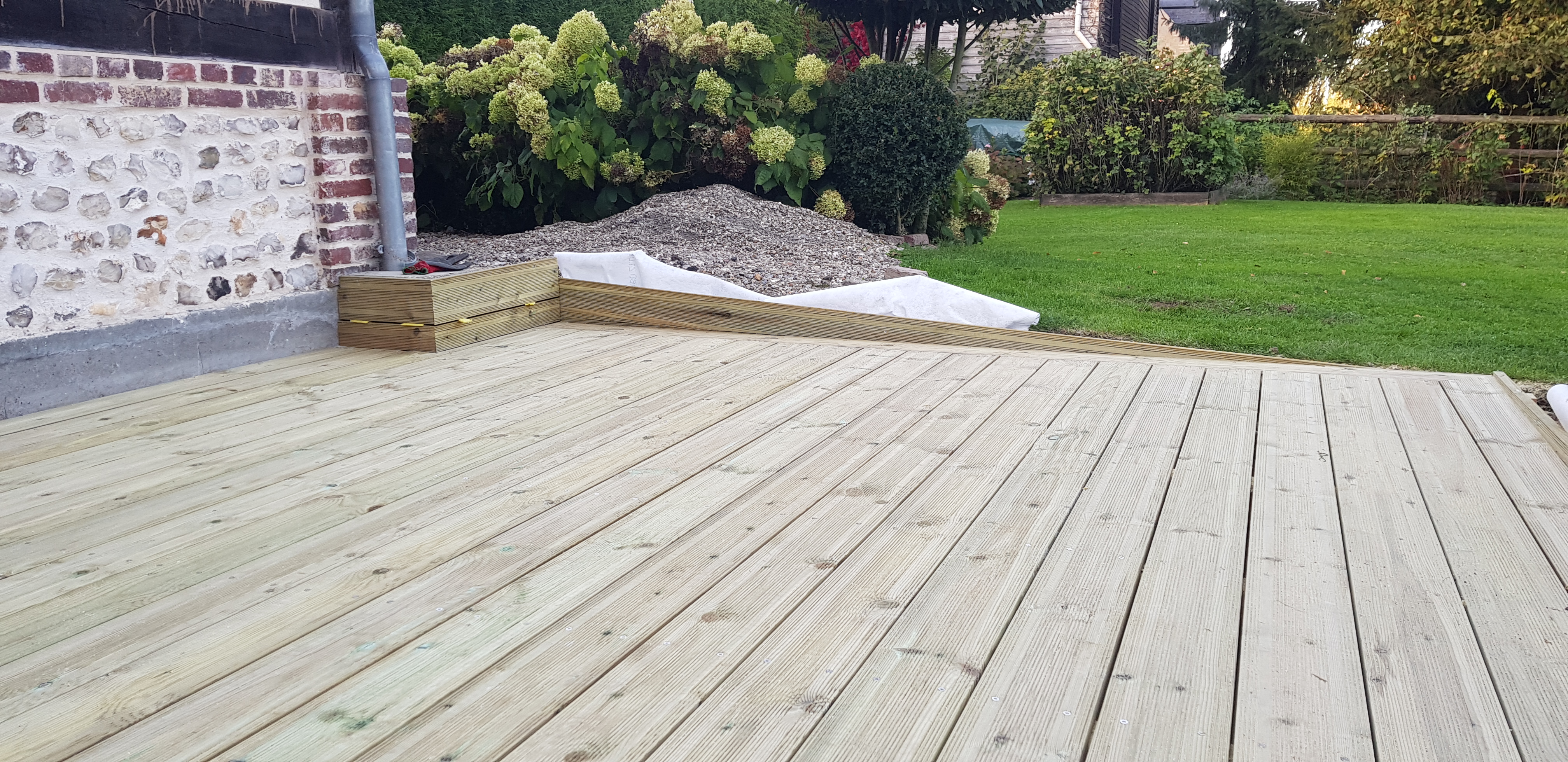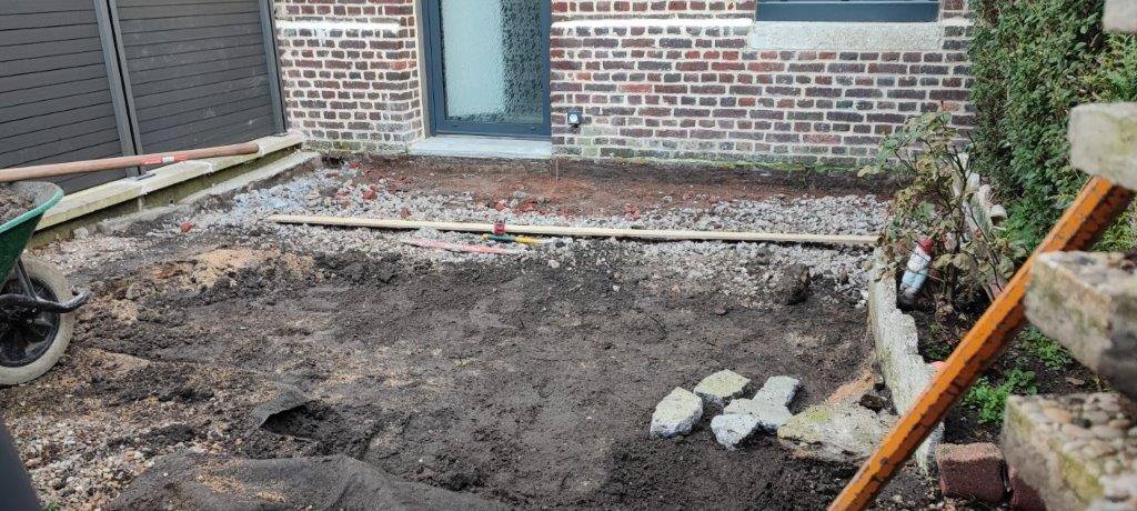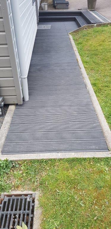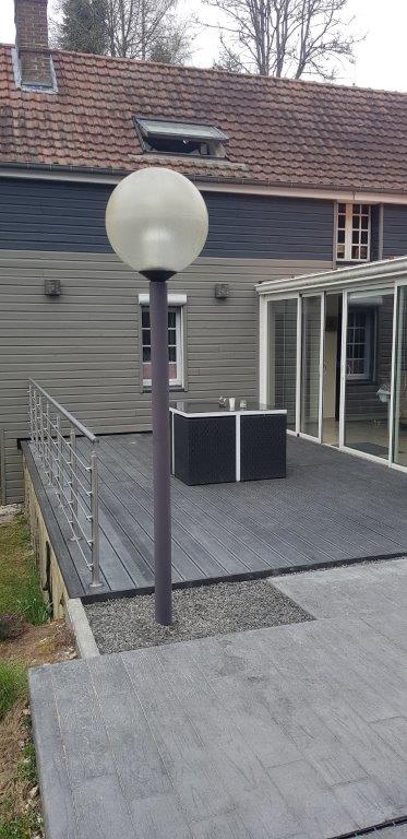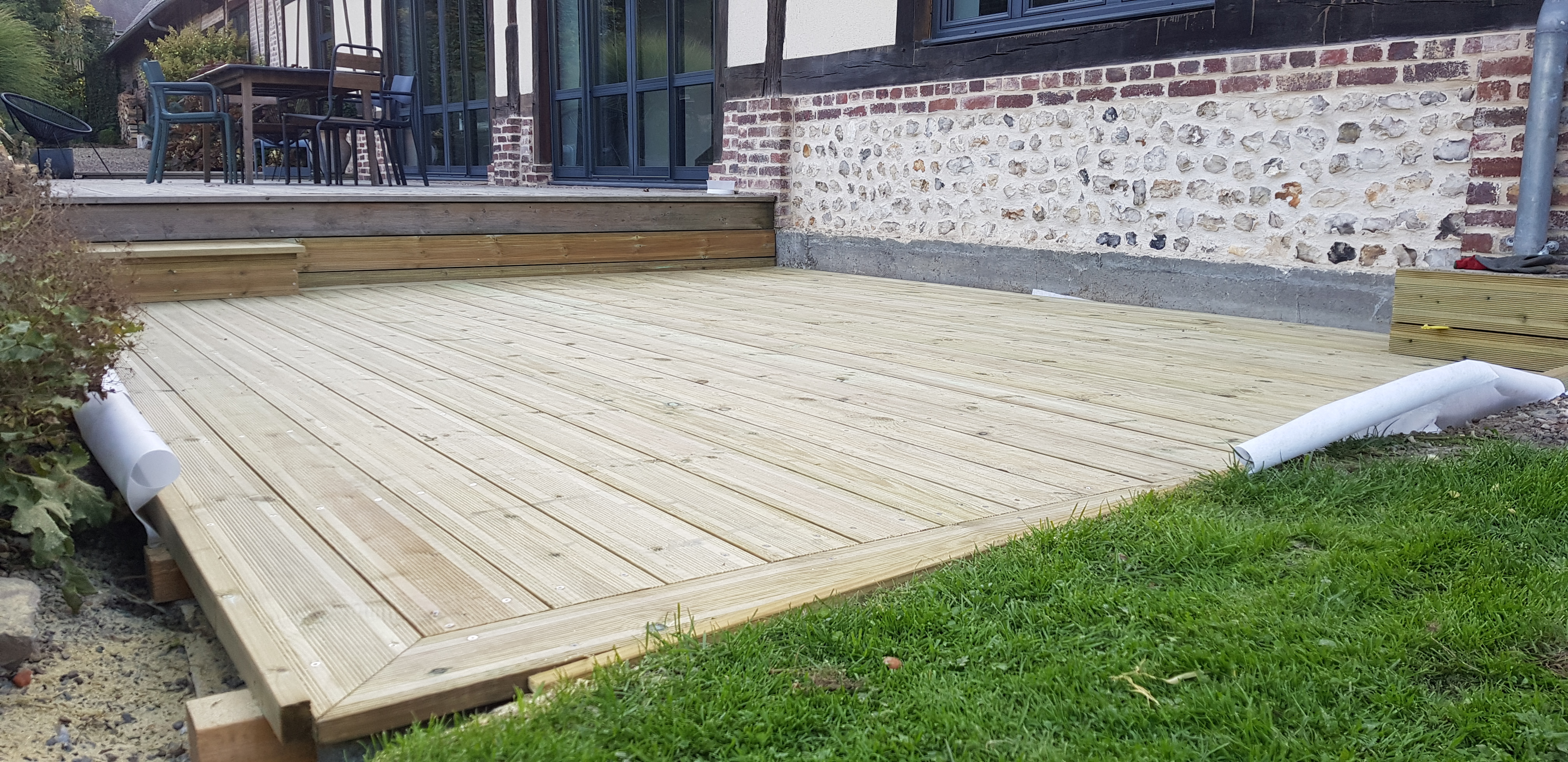 Réalisation d’un carport de 6m x5m. Poteaux armés et bétonnés. Madrillets 75×225, toiture bac acier et dallage de 10cm.